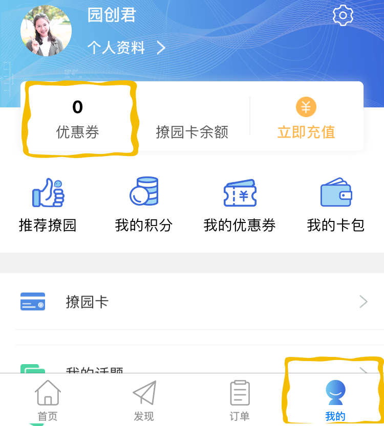 【撩园APP-我的-优惠券】中